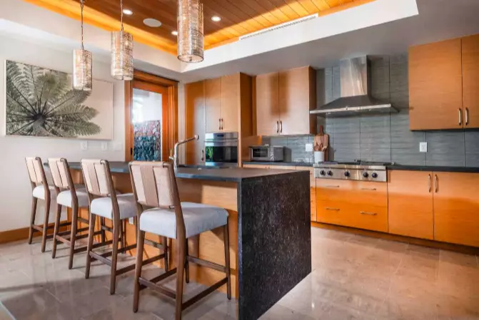Inside, the home is being elevated with a new, high-end custom interior design by Pacaso, featuring curated furnishings, luxury materials, and a serene palette inspired by the natural beauty of the Kohala Coast. The chef’s kitchen includes Sub-Zero and Wolf appliances, generous stone surfaces, and custom cabinetry. Every room is designed to maximize natural light and showcase the surrounding views, creating a calm, modern retreat for owners and guests.