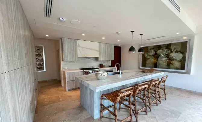 The Villa is located in front of the Mayakoba canals, in an area of 8,551 Sq. Ft; with 6,654 Sq. Ft of construction. Modern and luxurious spaces, high ceilings, windows that enhance the natural environment. On the ground floor it offers an elegant hall, with an elevator, half guest bathroom, spacious and open spaces, with luxury finishes: a double-height social area with large windows, thus privileging the spectacular views. In addition, a spacious dining room that connects to the luxurious kitchen that has a large bar, high-quality appliances, and a bar area. The impressive master bedroom, elegant, with large windows that open onto a terrace that connects you with nature and direct access to the pool, with an incredible spa-style bathroom, a jewel that manages to immerse yourself in the tropical jungle, with a tub, indoor and outside shower. It has a dressing room. Private pool facing the canal, open terraces, barbecue area, lounge chairs, integrating nature and landscapes as the main element of the experience, as well as a private dock.